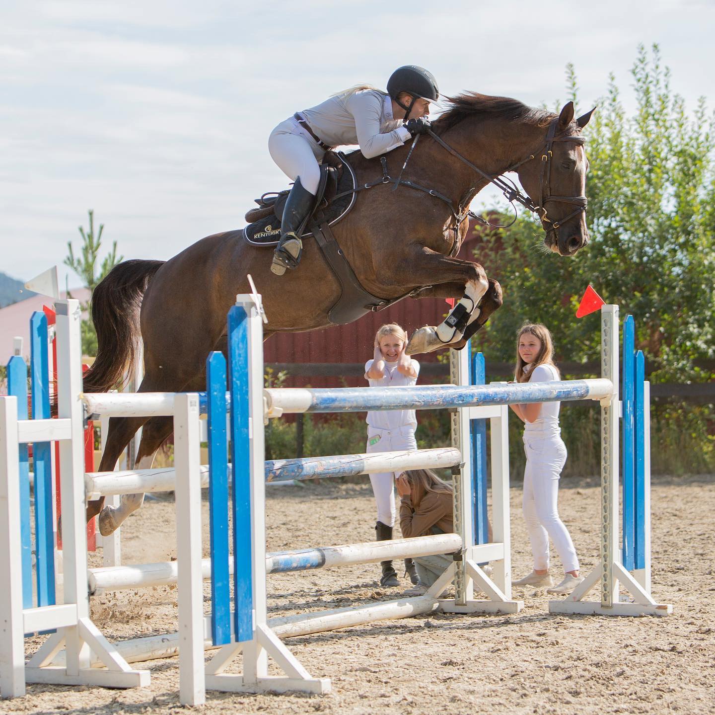 Opplegg: Signe underviser både bakkearbeid, bomarbeid og sprang for alle nivåer. Treningene er varierte, med fokus på god grunn-ridning og rytters innvirkning på hesten.